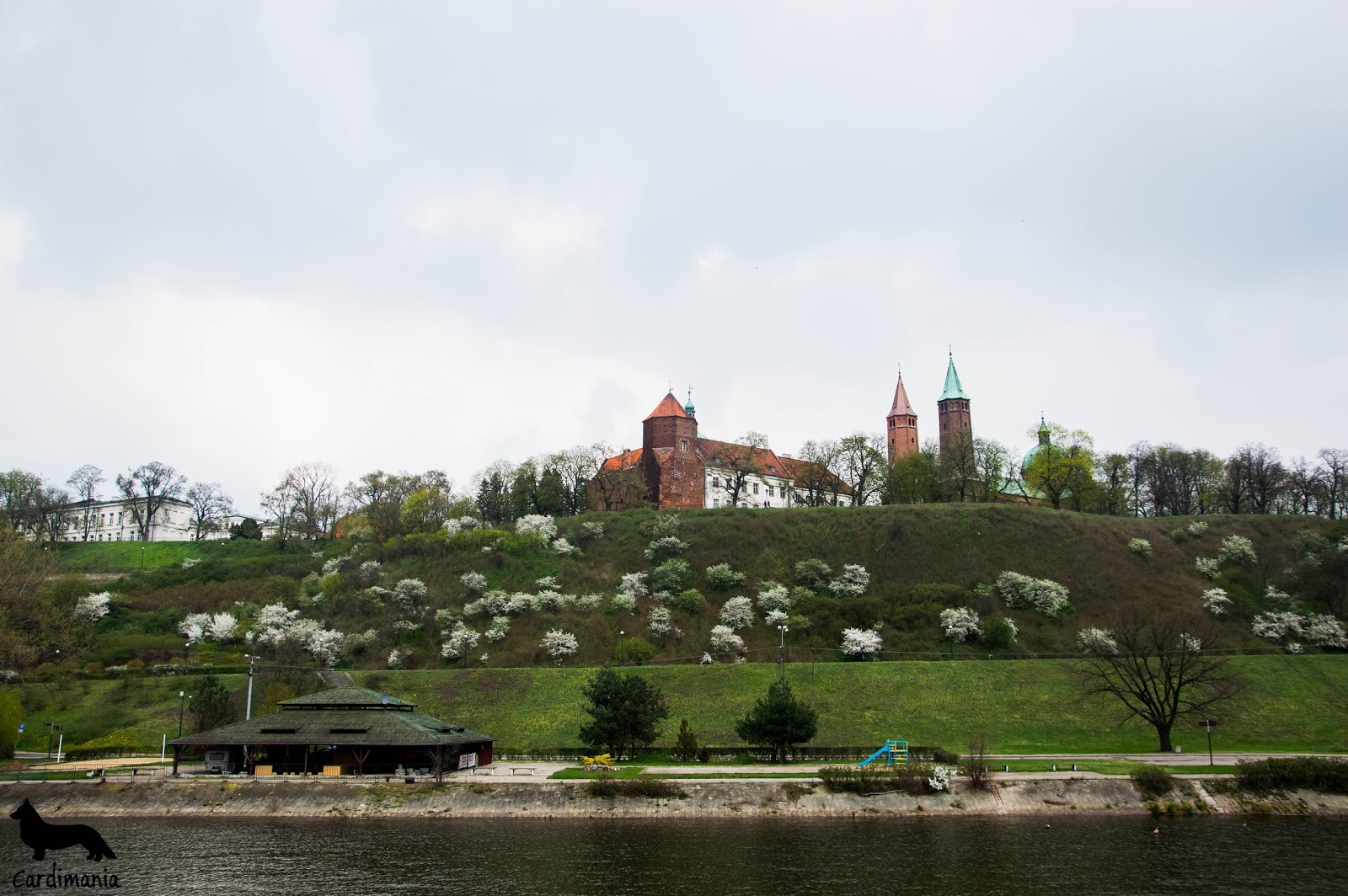 Z Ryneczku poszliśmy na punkt widokowy – na Wzgórze Tumskie. Wyremontowane, z miejscami do relaksu i napawanie się cudnym widokiem Wisły. Tu znowu psy wzbudziły fascynację i wypytywanie o rasę, o pochodzenie, robienie fot. Chyba zaczniemy siadać w trakcie wyjazdów z karteczką – Photo => 5 Euro. Niech zarabiają na siebie!