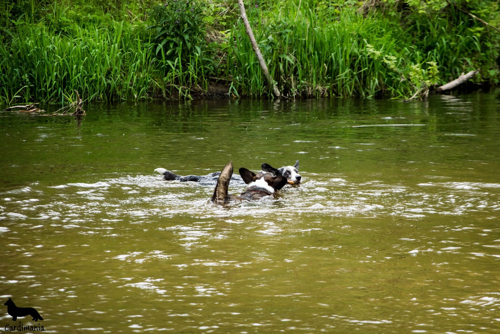 Tym razem wybieramy się na spacer po drugiej stronie torów (przeciwna niż przyjechaliśmy od strony Warszawy). Auto zostawiamy obok stacji Świder i piechotą udajemy się na nad rzekę. Psy podekscytowane, wyczuwają wodę i prą naprzód ile tylko sił w krótkich łapkach (oj, siły i pary to im nie brakuje!).