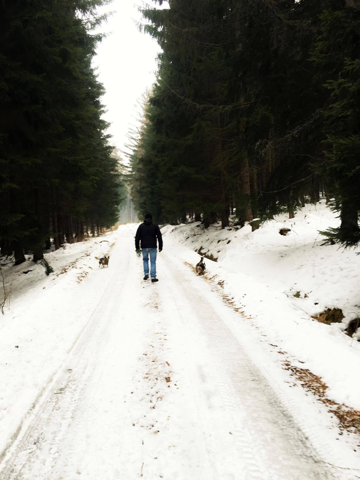 Teraz chodzimy z psami codziennie „wokół domu”, a trasy wiodą w górę i w dół. Czasami zdarza się, że któraś pogoni ptaka… Ale zboczem do góry jest zdecydowanie ciężko i po chwili psy są już z nami. Ta kondycja pewnie kiedyś się poprawi ale póki co nie obawiamy się dalekiej samodzielnej wycieczki.