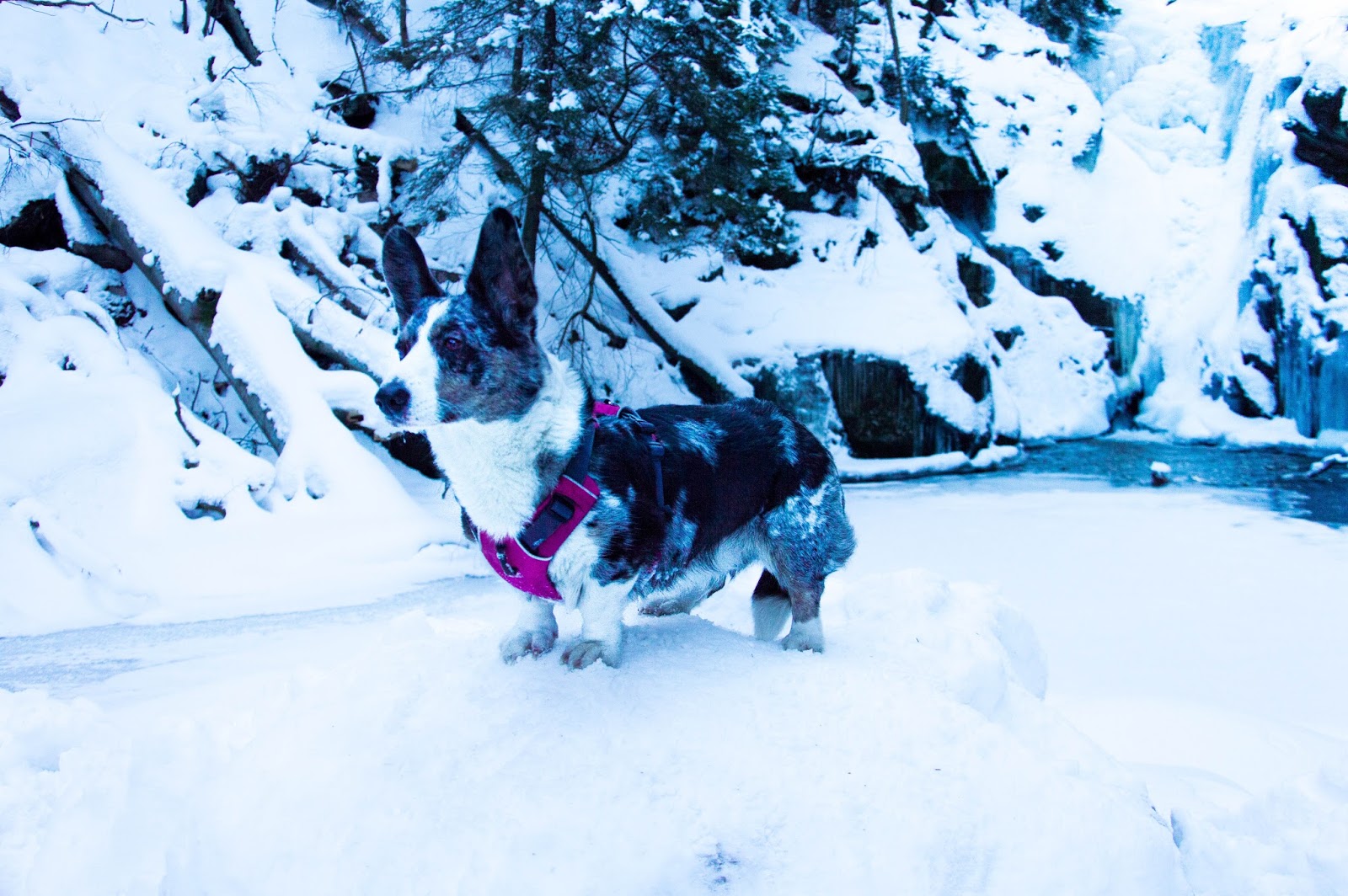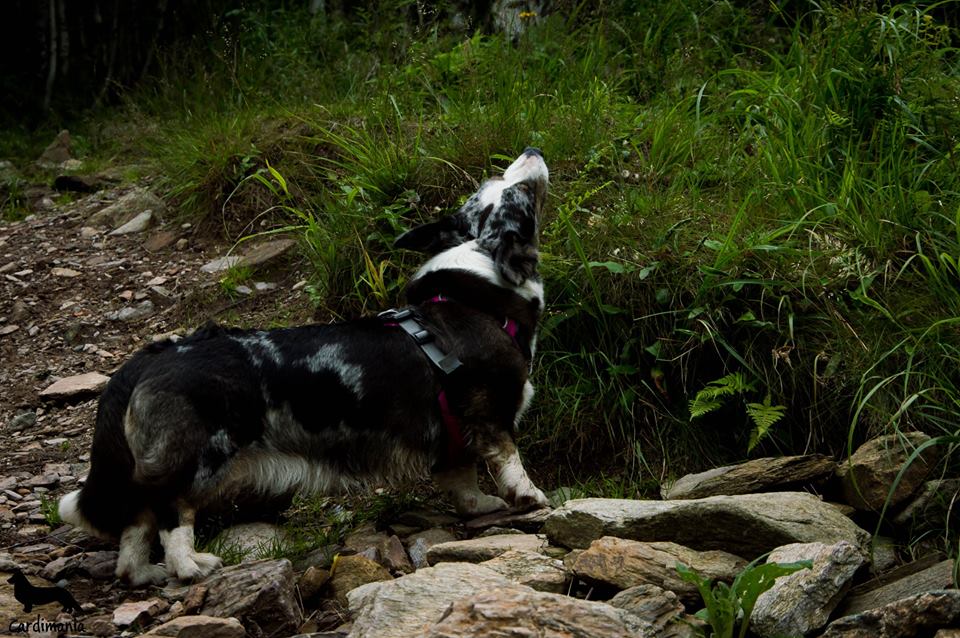 Początkowe głazy są lekkim utrudnieniem dla corgowych łapek. Jednak dziewczyny dzielnie maszerują w górę. Szybko robi się chłodno, bo słońce nie dociera na to zbocze. Zapinam mocniej kurtkę i mozolnie wdrapuję się do góry. Paweł, jak to on, tempem treningowym razem z Yumą i Twiggy mknie do góry. Ledo nadążam za nimi, bo my z Bibą zdecydowanie wolimy kontemplacyjny spacer 😉